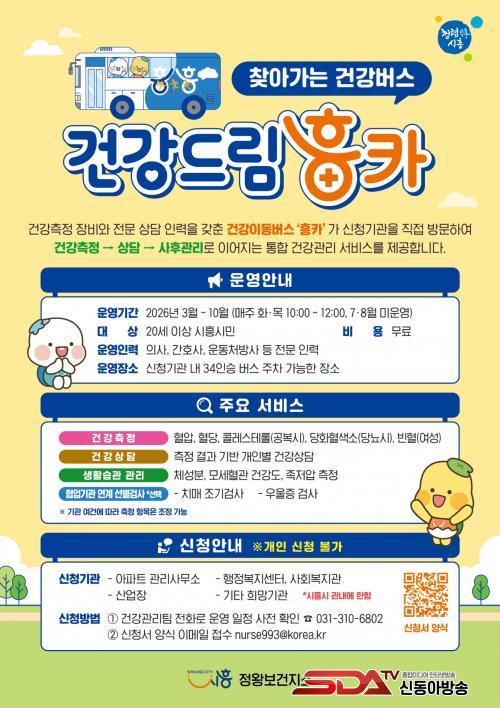 ¶ÇÇÑ, ÇÊ¿ä ½Ã Ä¡¸Å Á¶±â°ËÁø, ¿ì¿ï ¼±º°°Ë»ç µîÀº °ü·Ã Àü¹®±â°ü°ú ¿¬°èÇØ ÁøÇàµÇ¸ç, °Ë»ç °á°ú¿¡ µû¶ó º¸°Ç¼Ò ¹× °ü°è±â°ü »ç¾÷°ú ¿¬°èÇÑ »çÈİü¸® ¾È³»µµ ÇÔ²² Á¦°øµÈ´Ù. ½ÃÈï½Ã´Â ¡®°Ç°µå¸² ÈïÄ«¡¯ ¿î¿µÀ» ÅëÇØ ½Ã¹ÎÀÇ °Ç°¼ºñ½º Á¢±Ù¼ºÀ» ³ôÀ̰í, Áúº´ Ä¡·á Áß½ÉÀÌ ¾Æ´Ñ ¿¹¹æ Áß½ÉÀÇ Áö¿ª»çȸ °Ç°°ü¸® ü°è¸¦ °ÈÇØ ³ª°¥ °èȹÀÌ´Ù.