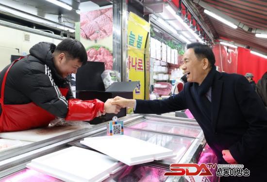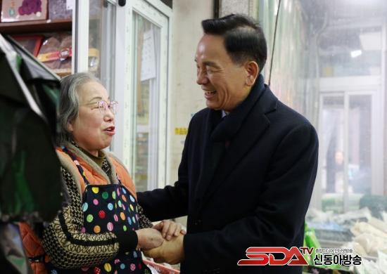 Á¶¼º¸í °­³²±¸Ã»ÀåÀÌ 12ÀÏ °­³²°³Æ÷½ÃÀ塤¿µµ¿ÀüÅë½ÃÀå¿¡¼­ ¼³ ¸íÀý À庸±â Çà»ç¿¡ Âü¿©ÇØ »óÀεé°ú Àλ縦 ³ª´©°í ÀÖ´Ù. - ¿µµ¿½ÃÀå