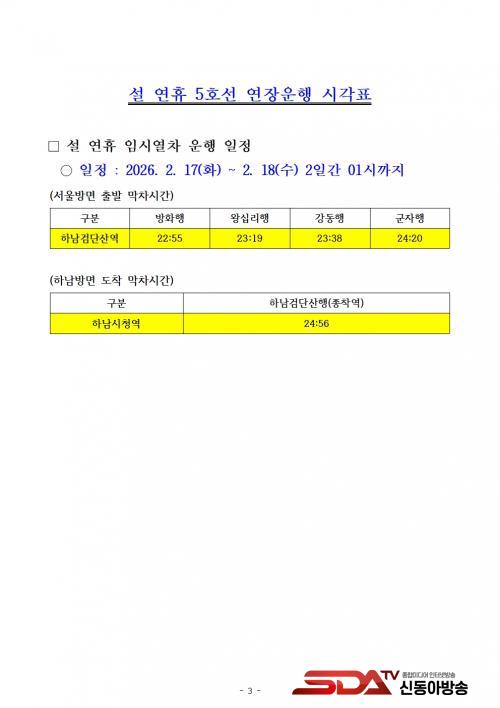 [½Åµ¿¾Æ¹æ¼Û Çϳ²½Ã=À̽ŵ¿±âÀÚ] Çϳ²½Ã´Â ´Ù°¡¿À´Â ¼³ ¿¬ÈÞ¸¦ ¸Â¾Æ ±Í¼º°´°ú ½Ã¹ÎµéÀÇ ¾ÈÀüÇÏ°í Æí¸®ÇÑ ±Í°¡¸¦ µ½±â À§ÇØ ¿À´Â 2¿ù 17Àϰú 18ÀÏ ¾çÀϰ£ ÁöÇÏö 5È£¼±ÀÇ ¸·Â÷ ½Ã°£À» ¿¬Àå ¿îÇàÇÑ´Ù°í ¹àÇû´Ù.