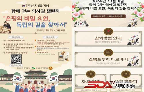 [½Åµ¿¾Æ¹æ¼Û ÀºÆò±¸=À̽ŵ¿±âÀÚ] ¼­¿ï ÀºÆò±¸´Â Á¦107ÁÖ³â 3¡¤1ÀýÀ» ¸Â¾Æ ´ÙÀ½ ´Þ 3ÀϺÎÅÍ 31ÀϱîÁö µ¶¸³ ¿µ¿õµéÀÇ ¹ßÀÚÃ븦 µû¶ó °É¾îº¸´Â ¡®ÇÔ²² °È´Â ¿ª»ç±æ 縰Áö¡¯¸¦ ¿î¿µÇÑ´Ù°í ¹àÇû´Ù.