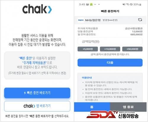 ¿øÈ°ÇÑ ÀÌ¿ëÀ» À§Çؼ­´Â ÆÇ¸Å °³½Ã 1~2ÀÏ Àü±îÁö ¡®chak¡¯ ¾Û¿¡¼­ ¿©¼ö»ç¶û»óǰ±ÇÀ» ¡®ÁÖ°Å·¡ »óǰ±Ç¡¯À¸·Î ¼³Á¤ÇØ¾ß ÇÑ´Ù. À̸¦ ¼³Á¤ÇÏÁö ¾ÊÀ» °æ¿ì ºü¸¥ ÃæÀü ¹öưÀ» ´­·¯µµ ±âÁ¸ ¸ÞÀÎ È­¸éÀ¸·Î À̵¿µÅ ´ë±â ½Ã°£ÀÌ ±æ¾îÁú ¼ö ÀÖ´Ù.