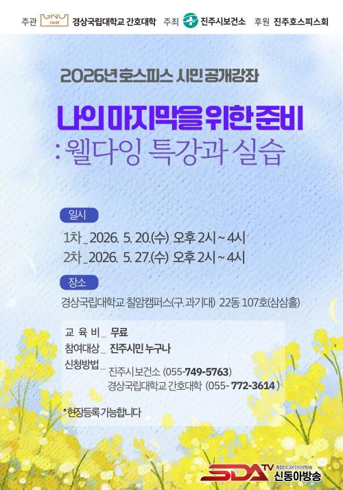 1Â÷ °Á´ 5¿ù 20ÀÏ(¼ö) ¿ÀÈÄ 2~4½Ã, 2Â÷ °Á´ 5¿ù 27(¼ö) ¿ÀÈÄ 2~4½Ã µî 2Â÷·Ê ÁøÇàµÇ¸ç, ÁøÁÖ ½Ã¹ÎÀÌ¸é ´©±¸³ª ¹«·á·Î Âü¼®ÇÒ ¼ö ÀÖ´Ù. »çÀü ½ÅûÀº 4¿ù 27ÀϺÎÅÍ 5¿ù 15ÀϱîÁö ÀüÈ·Î ¹®ÀÇÇÏ¸é µÇ°í, ´çÀÏ¿¡ ÇöÀå µî·Ïµµ °¡´ÉÇÏ´Ù.