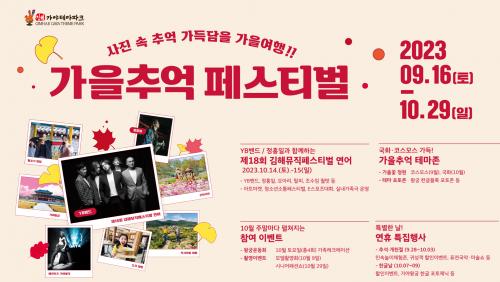 [½Åµ¿¾Æ¹æ¼Û´º½º=ÀÌÁ¶Àº±âÀÚ] (Àç)±èÇØ¹®È­Àç´Ü ±èÇØ°¡¾ßÅ׸¶ÆÄÅ©°¡ º»°ÝÀûÀÎ ¿©Çà°èÀý °¡À»À» ¸Â¾Æ º¼°Å¸®¿Í Áñ±æ°Å¸®°¡ °¡µæÇÑ ÃàÁ¦¸¦ ¼±º¸ÀδÙ. °¡¾ßÅ׸¶ÆÄÅ©°¡ ¿À´Â 10¿ù±îÁö <°¡À»Ãß¾ï Æä½ºÆ¼¹ú>À» °³ÃÖÇÏ°í º»°ÝÀûÀÎ ÀÔÀå°´ ¸ðÁý¿¡ ³ª¼±´Ù. À̹ø ÃàÁ¦¿¡´Â °ø¿ø¡¦