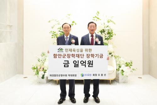 [½Åµ¿¾Æ¹æ¼Û °æ³²ÇÔ¾È=À̽ŵ¿±âÀÚ] (ÁÖ)À¯Ã¢ Á¶¿ë¼± ȸÀå(Àç°æÇԾȱºÇâ¿ìȸ ¿ª´ëȸÀå)Àº Áö³­ 5ÀÏ Àç°æ ÇԾȱº Çâ¿ìȸ Á¤±âÃÑȸ ¹× Çâ¿ìÀÇ ¹ã Çà»ç¿¡¼­ °íÇâÀÎÀçÀ°¼ºÀ» À§ÇÑ ÀåÇбâ±Ý 1¾ï ¿øÀ» ÇԾȱºÀåÇÐÀç´Ü¿¡ ±âŹÇß´Ù. À̳¯ Á¶¿ë¼± ȸÀåÀº ¡°°íÇâÀÇ ÇлýµéÀÌ ÀÚ¡¦