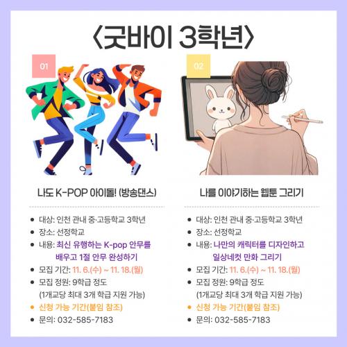 [½Åµ¿¾Æ¹æ¼Û ÀÎõ= À±¹Î½Ä±âÀÚ] ÀÎõ±¤¿ª½Ã±³À°Ã»¼­±¸µµ¼­°ü(°üÀå ¹ÚÁ¤Èñ)Àº ¿À´Â 25ÀϺÎÅÍ °ü³» Áß¡¤°íµîÇб³ 3Çгâ ÇлýµéÀ» ´ë»óÀ¸·Î ¡®±Â¹ÙÀÌ 3Çг⡯ ÇÁ·Î±×·¥À» ¿î¿µÇÑ´Ù. ¡®±Â¹ÙÀÌ 3Çг⡯Àº ÃֽŠK-POP ¾È¹«¸¦ ¹è¿öº¸´Â¡®³ªµµ K-POP ¾ÆÀ̵¹! ¡¯°ú ³ª¸¸ÀÇ ¡¦