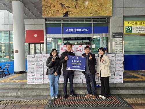 [½Åµ¿¾Æ¹æ¼Û ½ÃÈï½Ã=À̽ŵ¿±âÀÚ] ½ÃÈï½Ã ÀºÇൿ Àº°è³ª´®±³È¸°¡ Áö³­ 12¿ù 2ÀÏ Àú¼Òµæ Ãë¾à°èÃþÀ» µ½±â À§ÇØ ¶ó¸é 100»óÀÚ¸¦ ÈÄ¿øÇß´Ù. Àº°è³ª´®±³È¸´Â 2019³â 3¿ù ½ÃÈï Àº°èÁö±¸¿¡ ÀÚ¸®¸¦ ÀâÀº °³Ã´±³È¸·Î 2020³â Äڷγª ±Øº¹ ºÒ¿ì¡¦