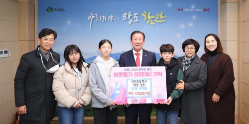 [½Åµ¿¾Æ¹æ¼Û °æ³²ÇÔ¾È=À̽ŵ¿±âÀÚ] »êÀÎÃʵîÇб³ ÇлýµéÀÌ 26ÀÏ Áö¿ª »çȸÀÇ ¾î·Á¿î ÀÌ¿ôÀ» µ½±â À§ÇØ ¹ÙÀÚȸ¸¦ ¿­¾î ¸ð±ÝÇÑ ¼º±Ý 71¸¸2,870¿øÀ» ÇԾȱº¿¡ ±âŹÇß´Ù. À̳¯ ±âŹ½Ä¿¡´Â Á¶±ÙÁ¦ ÇԾȱº¼ö¿Í ÁøÁ¤¸í ±³Àå¼±»ý´Ô, ÃÖ°æÃ¶ ±³°¨¼±»ý´Ô ¹× Çлýȸ Çлýµé µî ¡¦
