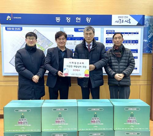 [½Åµ¿¾Æ¹æ¼Û ½ÃÈï½Ã=À̽ŵ¿±âÀÚ] ½ÃÈ­µ¿»ê±³È¸´Â Áö³­ 26ÀÏ ¿¬¸»À» ¸Â¾Æ Á¤¿Õ1µ¿ ÇàÁ¤º¹Áö¼¾Å͸¦ ¹æ¹®ÇØ °ü³» ¾î·Á¿î ÀÌ¿ôÀ» µ½°íÀÚ ¶ó¸é, ½Ä¿ëÀ¯, ÇÞ¹Ý µî ´Ù¾çÇÑ ½Ä·áǰÀÌ ´ã±ä µû¶æÇÑ Èñ¸Á »óÀÚ 30°³¸¦ ±âºÎÇϰí Àü´Þ½ÄÀ» °¡Á³´Ù. ½ÃÈ­µ¿»ê±³È¸´Â Áö¿ª»çȸ ¼Ò¿Ü¡¦