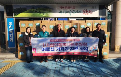 [½Åµ¿¾Æ¹æ¼Û °æ³²ÇÔ¾È=À̽ŵ¿±âÀÚ] ÇԾȱºÀº (»ç)ÇÔ¾ÈÇູ³ª´®ÈÄ¿øÈ¸¿¡¼­ ±âÃÊ»ýȰ¼ö±ÞÀÚ ¹× Â÷»óÀ§ °èÃþÁß ¿ä½Ç±Ý, º¯½Ç±Ý, Àå¾ÖÀÎ, ÁßÁõÄ¡¸Å·Î ¾î·Á¿òÀ» °Þ°í ÀÖ´Â 90¼¼´ë¿¡ ¼ºÀÎ¿ë ±âÀú±Í 90¹Ú½º(432¸¸ ¿ø »ó´ç)¸¦ Áö¿øÇß´Ù°í ¹àÇû´Ù. À̳¯ ±âŹ½Ä¿¡´Â À¯¿øÁÖ ±º¡¦