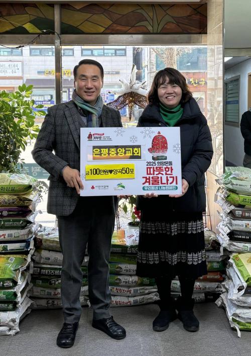 ÀÀ¾Ï1µ¿, ÀºÆòÁß¾Ó±³È¸·ÎºÎÅÍ ¼º±Ý 1¹é¸¸ ¿ø°ú ¹é¹Ì 500kg Àü´Þ¹Þ¾Æ