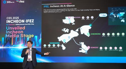 [½Åµ¿¾Æ¹æ¼Û ÀÎõ= À±¹Î½Ä±âÀÚ] ÀÎõ°æÁ¦ÀÚÀ¯±¸¿ªÃ»(ûÀå À±¿ø¼®)Àº ÇöÁö ½Ã°¢ 1¿ù 7ÀÏ ¹Ì±¹ ¶ó½ºº£À̰Žº¿¡¼­ ¿­¸° ¡®CES(Consumer Electronics Show, ±¹Á¦ÀüÀÚÁ¦Ç°¹Ú¶÷ȸ) 2025¡¯¿¡ ¡®INCHEON-IFEZ¡¯È«º¸°üÀ» °³°üÇØ Àü ¼¼°è °ü¶÷°´µéÀ» ¸ÂÀÌÇß´Ù. ¡®INCHEON-IFE¡¦