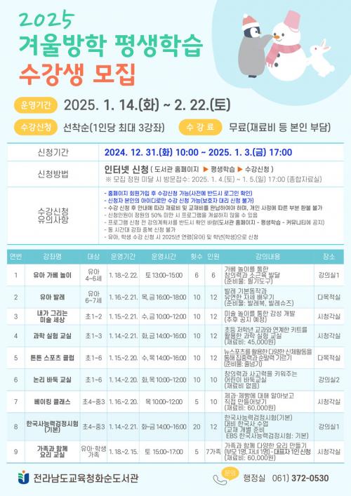 Àü¶ó³²µµ±³À°Ã»È­¼øµµ¼­°ü, 2025³â °Ü¿ï¹æÇÐ Æò»ýÇнÀ ÇÁ·Î±×·¥ ¿î¿µ