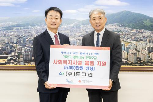 [½Åµ¿¾Æ¹æ¼Û = À±¹Î½Ä±âÀÚ] ÀÎõ±¤¿ª½Ã °è¾ç±¸(±¸Ã»Àå À±È¯)´Â Áö³­ 14ÀÏ ¼­¿î»ê¾÷´ÜÁö ³»¿¡ À§Ä¡ÇÑ (ÁÖ)µàÅ©¸°ÀÌ À»»ç³â ¼³ ¸íÀýÀ» ¸Â¾Æ Áö¿ª ³» »çȸº¹Áö½Ã¼³ Áö¿øÀ» À§ÇÑ 5õ¸¸ »ó´çÀÇ ÈÄ¿ø¹°Ç°À» ±âŹÇß´Ù°í ¹àÇû´Ù. 1996³â¿¡ ¼³¸³µÈ ±¹¼Ò¹è±â ÁýÁø±â ¹× ȯ°æ¼³¡¦