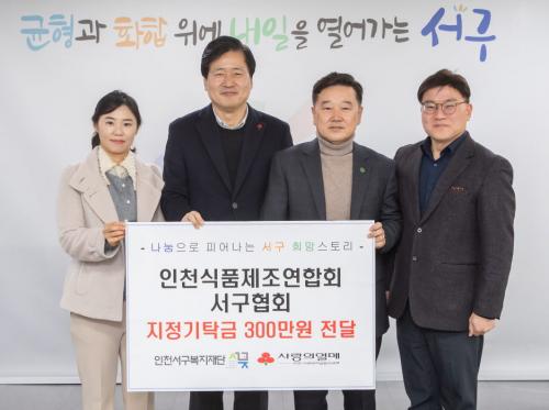 [½Åµ¿¾Æ¹æ¼Û = À±¹Î½Ä±âÀÚ] ÀÎõ±¤¿ª½Ã ¼­±¸(±¸Ã»Àå °­¹ü¼®)´Â ¼³ ¸íÀýÀ» ¸ÂÀÌÇÏ¿© 22ÀÏ ¼­±¸½ÄǰÁ¦Á¶¾÷ÇùÀÇȸ(ȸÀå ÀÓº´¼®)·ÎºÎÅÍ 300¸¸¿ø »ó´ç ¼º±ÝÀ» Àü´Þ¹Þ¾Ò´Ù. À̳¯ Àü´Þ¹ÞÀº ¼º±ÝÀº ÀÎõ»çȸº¹Áö°øµ¿¸ð±Ýȸ¸¦ ÅëÇØ Ãë¾à°èÃþ ¹× Àú¼Òµæ °¡±¸¸¦ À§ÇØ »ç¿ëµÉ ¡¦