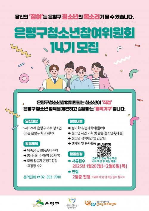 [½Åµ¿¾Æ¹æ¼Û ÀºÆò±¸=À̽ŵ¿±âÀÚ] ÀºÆò±¸´Â ³»´Þ 6ÀϱîÁö û¼Ò³âÀÇ ±ÇÀÍÁõÁø ¹× û¼Ò³â »ç¾÷¡¤Á¤Ã¥ Âü¿© Ȱ¼ºÈ­¸¦ À§ÇØ ¡®Á¦14±â ÀºÆò±¸ û¼Ò³âÂü¿©À§¿øÈ¸¡¯ À§¿ø°ú û³â ¸àÅ並 ¸ðÁýÇÑ´Ù°í ¹àÇû´Ù. ¡®Á¦14±â ÀºÆò±¸ û¼Ò³âÀ§¿øÈ¸¡¯ À§¿øÀº Çб³Ãßõ°ú °ø°³¸ðÁýÀ» ÅëÇØ¡¦