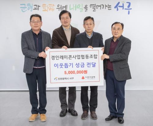 [½Åµ¿¾Æ¹æ¼Û ÀÎõ= À±¹Î½Ä±âÀÚ] ÀÎõ ¼­±¸(±¸Ã»Àå °­¹ü¼®)´Â Áö³­ 4ÀÏ °æÀη¹¹ÌÄܰø¾÷Çùµ¿Á¶ÇÕ(ÀÌ»çÀå ±è¼º¹¬)À¸·ÎºÎÅÍ ÀÌ¿ôµ½±â ¼º±Ý 500¸¸¿øÀ» Àü´Þ¹Þ¾Ò´Ù. °æÀη¹¹ÌÄܰø¾÷Çùµ¿Á¶ÇÕ ±è¼º¹¬ ÀÌ»çÀåÀº ¡°¼­±¸ÀÇ ¾î·Á¿î ÀÌ¿ô¿¡°Ô µµ¿òÀ» ÁÙ ¼ö ÀÖ¾î ±â»Ú´Ù¡±¶ó¸ç ¡°¡¦