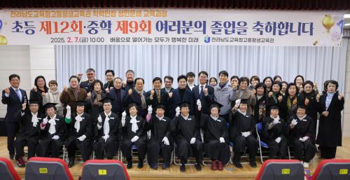 [½Åµ¿¾Æ¹æ¼Û Àü³²°íÈï=À̽ŵ¿±âÀÚ] Àü¶ó³²µµ±³À°Ã»°íÈïÆò»ý±³À°°üÀÌ 2¿ù 7ÀÏ(±Ý) ±³À°°ü 1Ãþ ½Ãû°¢½Ç¿¡¼­ Á¹¾÷»ý °¡Á· µî 70¿© ¸íÀÌ Âü¼®ÇÑ °¡¿îµ¥ 2024Çг⵵ ÇзÂÀÎÁ¤ ¼ºÀι®ÇØ ±³À°°úÁ¤ Ãʵî Á¦12ȸ ¡¤ ÁßÇÐ Á¦9ȸ Á¹¾÷½ÄÀ» °³ÃÖÇß´Ù. À̹ø Á¹¾÷½Ä¿¡´Â ±è´ëÁß Àü¡¦
