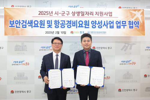 [½Åµ¿¾Æ¹æ¼Û ÀÎõ= À±¹Î½Ä±âÀÚ] ÀÎõ½Ã Áß±¸°¡ ¿ÃÇØºÎÅÍ ´ëÇѹα¹Ç×°øº¸¾ÈÇùȸ¿Í ¼ÕÀ» Àâ°í º¸¾È°Ë»ö¿ä¿ø¡¤Ç×°ø°æºñ¿ä¿ø µî ¡®Áö¿ª»ê¾÷ ¸ÂÃãÇü ÀÎÀç ¾ç¼º¡¯¿¡ ¹ÚÂ÷¸¦ °¡ÇÑ´Ù. ±èÁ¤Çå ÀÎõ Áß±¸Ã»Àå°ú ¹ÚÀç¿Ï ´ëÇѹα¹Ç×°øº¸¾ÈÇùȸ ȸÀåÀº Áö³­ 10ÀÏ ¿ÀÈÄ Áß±¸Ã» ±¸¡¦