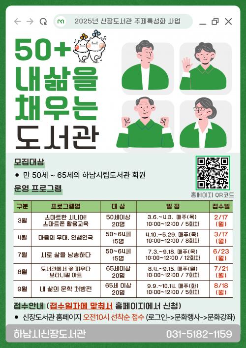 Çϳ²½Ã, ½ÅÀåµµ¼­°ü¿¡¼­ ¡®50+ ³» »îÀ» ä¿ì´Â µµ¼­°ü¡¯ ÇÁ·Î±×·¥ ¿î¿µ