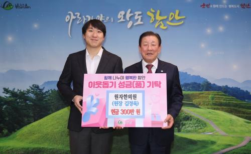 [½Åµ¿¾Æ¹æ¼Û °æ³²ÇÔ¾È=À̽ŵ¿±âÀÚ] ÇԾȱºÀº 13ÀÏ ¿øÀÚÇÑÀÇ¿ø¿¡¼­ ¾î·Á¿î ÀÌ¿ôÀ» À§ÇØ Çö±Ý 300¸¸ ¿øÀ» ±âºÎÇß´Ù°í ¹àÇû´Ù. À̳¯ ±âʽÄÀº ÇԾȱºÃ» ±º¼ö½Ç¿¡¼­ ÁøÇàµÆÀ¸¸ç Á¶±ÙÁ¦ ÇԾȱº¼ö, ±èÁ¤¿í ¿øÀå°ú °ü°èÀÚ°¡ Âü¼®Çß´Ù. ±âŹµÈ ¼º±ÝÀº °øµ¿¸ð±Ýȸ¸¦ ÅëÇØ ¾î·Á¡¦
