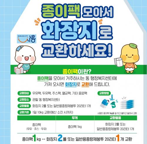 [½Åµ¿¾Æ¹æ¼Û ½ÃÈï½Ã=À̽ŵ¿±âÀÚ] ½ÃÈï½Ã´Â ÀÚ¿øÀçȰ¿ëÀ» À§ÇØ Á¾ÀÌÆÑÀ» ÁÖ¹æ¿ë Á¾ÀÌ ÇàÁÖ(ŰģŸ¿ù) ¶Ç´Â Á¾·®Á¦ ºÀÅõ·Î ±³È¯ÇØ ÁÖ´Â »ç¾÷À» ¿ÃÇØµµ Áö¼Ó ÃßÁøÇÑ´Ù. ¿ìÀ¯ ÆÑ, ÁÖ½º ÆÑ, µÎÀ¯ ÆÑ, ¸ê±Õ ÆÑ µîÀÇ Á¾ÀÌ ÆÑÀÇ ³»¿ë¹°À» ºñ¿ì°í, ±ú²ýÀÌ ¾Ä¾î¼­ ¸»¸° µÚ ÀÚ¸£¡¦