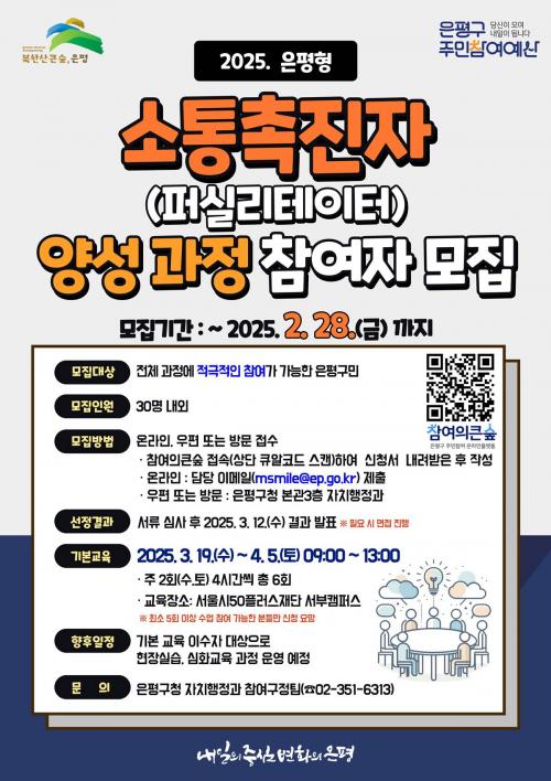 [½Åµ¿¾Æ¹æ¼Û ÀºÆò±¸=À̽ŵ¿±âÀÚ] ÀºÆò±¸´Â Áö¿ª ÁֹεéÀÌ ´Ù¾çÇÑ ÀǰßÀ» ¼ÒÅëÇÏ°í ¿ø¸¸ÇÑ ÇÕÀǸ¦ À¯µµÇÒ ¼ö ÀÖµµ·Ï ¿À´Â 28ÀϱîÁö ¼ÒÅëÃËÁøÀÚ(ÆÛ½Ç¸®Å×ÀÌÅÍ) ¾ç¼º °úÁ¤ ±³À°»ýÀ» ¸ðÁýÇÏ°í ³»´Þ 19ÀϺÎÅÍ ¿î¿µÇÑ´Ù°í ¹àÇû´Ù. ¼ÒÅëÃËÁøÀÚ´Â Áö¿ª¹®Á¦ÇØ°á ¶Ç´Â Çù¾÷À» À§¡¦