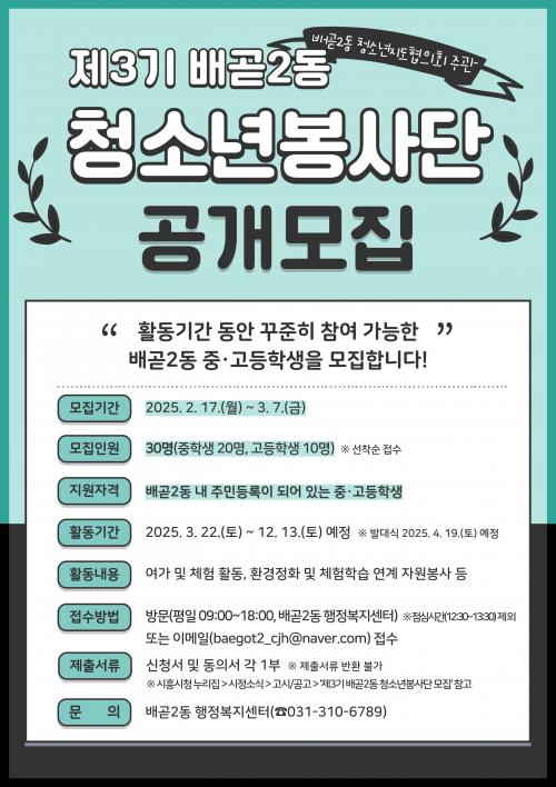 [½Åµ¿¾Æ¹æ¼Û ½ÃÈï½Ã=À̽ŵ¿±âÀÚ] ½ÃÈï½Ã ¹è°ð2µ¿ û¼Ò³âÁöµµÇùÀÇȸ´Â ÀÚ¿øºÀ»ç ¹× ´Ù¾çÇÑ Ã¼Çè Ȱµ¿À» ÇÔ²²ÇÒ Á¦3±â ¹è°ð2µ¿ û¼Ò³âºÀ»ç´Ü¿øÀ» 3¿ù 7ÀϱîÁö ¸ðÁýÇÑ´Ù. ¹è°ð2µ¿ û¼Ò³âÁöµµÇùÀÇȸ´Â 2023³âºÎÅÍ °ü³» û¼Ò³âµé¿¡°Ô ÀÚ¿øºÀ»ç¿Í üÇè Ȱµ¿À» Á¦°øÇϰí, Áö¡¦