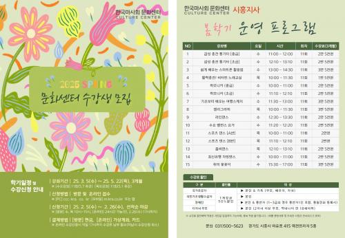[½Åµ¿¾Æ¹æ¼Û ½ÃÈï½Ã=À̽ŵ¿±âÀÚ] ½ÃÈï½Ã Á¤¿Õº»µ¿ÀÇ Çù·Â ±â°üÀÎ Çѱ¹¸¶»çȸ ½ÃÈïÁö»ç°¡ 2¿ù 26ÀϱîÁö ¡®2025³âµµ º½Çб⠰­Á¡¯ ¼ö°­»ýÀ» ¸ðÁýÇÑ´Ù. Çѱ¹¸¶»çȸ ½ÃÈïÁö»ç ¹®È­¼¾ÅÍ¿¡¼­ ¿î¿µµÇ´Â º½Çб⠰­Á´ 3¿ù 5ÀϺÎÅÍ 5¿ù 22ÀϱîÁö ¸ÅÁÖ ¼ö¿äÀϰú ¸ñ¿äÀÏ, °­Á¡¦