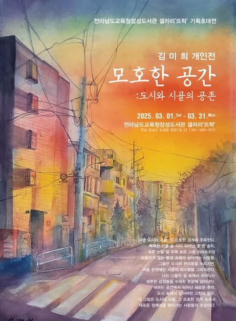 [½Åµ¿¾Æ¹æ¼Û Àü³²À强=À̽ŵ¿±âÀÚ] Àü¶ó³²µµ±³À°Ã» À强µµ¼­°üÀÌ 3¿ù 1ÀϺÎÅÍ 31ÀϱîÁö ÇÑ ´Þ°£ ¡®°¶·¯¸® ¶ß¶ô¡¯¿¡¼­ ±è¹ÌÈñ ÀÛ°¡ÀÇ °³ÀÎÀü ¡®¸ðÈ£ÇÑ °ø°£: µµ½Ã¿Í ½Ã°ñÀÇ °øÁ¸¡¯À» °³ÃÖÇÑ´Ù. À̹ø Àü½Ã´Â µµ½Ã¿Í ½Ã°ñÀÌ °øÁ¸ÇÏ´Â °ø°£À» µû¶æÇÑ °¨¼ºÀ¸·Î Ç®¾î³½ ±è¹Ì¡¦
