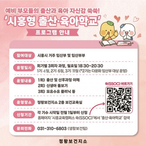 [½Åµ¿¾Æ¹æ¼Û ½ÃÈï½Ã=À̽ŵ¿±âÀÚ] ½ÃÈï½Ã´Â ÀÓ»êºÎ ¹× ¿¹ºñ ºÎ¸ð¸¦ ´ë»óÀ¸·Î ½ÃÈïÇü Ãâ»ê¤ýÀ°¾ÆÇб³¡¯¸¦ ¿î¿µÇÑ´Ù. À̹ø ÇÁ·Î±×·¥Àº Áö³­ÇØ¿¡ ÀÌ¾î ¿ÃÇØµµ ¾ß°£ °­Á·Π°³¼³µÅ, ¿¹ºñ ¾ÆºüµéÀÇ Âü¿©¸¦ Àû±Ø À¯µµÇÒ °èȹÀÌ´Ù. Ãâ»ê Àü ºÎ¸ð°¡ ¹è¿ö¾ß ÇÒ Áß¿äÇÑ Áö½Ä°ú ±à¡¦