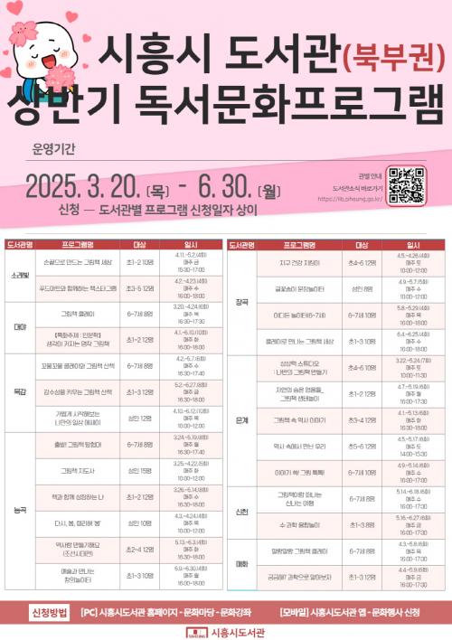[½Åµ¿¾Æ¹æ¼Û ½ÃÈï½Ã=À̽ŵ¿±âÀÚ] ½ÃÈï½Ã ºÏºÎ±Ç 8°³ °ø°øµµ¼­°ü(¼Ò·¡ºû¤ý´É°î¤ý´ë¾ß¤ý¸ñ°¨¤ýÀå°î¤ýÀº°è¤ý½Åõ¤ý¸ÅÈ­)ÀÌ 3¿ù 20ÀϺÎÅÍ 6¿ù 30ÀϱîÁö »ó¹Ý±â Á¤±â µ¶¼­¹®È­ ÇÁ·Î±×·¥À» ¿î¿µÇÑ´Ù. À̹ø ÇÁ·Î±×·¥Àº ½Ã¹Î 273¸íÀ» ´ë»óÀ¸·Î »ý¾ÖÁֱ⺰ 26°³ ÇÁ·Î±×·¥(¾Æµ¿¡¦