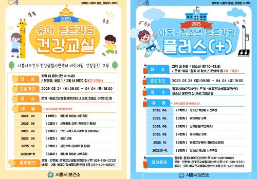 [½Åµ¿¾Æ¹æ¼Û ½ÃÈï½Ã=À̽ŵ¿±âÀÚ] ½ÃÈï½Ãº¸°Ç¼Ò Çູ°Ç°­¼¾ÅÍ ¹× °Ç°­»ýȰÁö¿ø¼¾ÅÍ´Â Áö¿ª ³» ¾î¸°ÀÌ¿Í Ã»¼Ò³âÀÇ °Ç°­ÇÑ ¼ºÀå°ú ¿Ã¹Ù¸¥ »ýȰ½À°ü Çü¼ºÀ» µ½±â À§ÇØ ¡®À¯¾Æ ưưÀÚ¶÷ °Ç°­±³½Ç¡¯°ú ¡®Ã»¼Ò³â ưưÀÚ¶÷ Ç÷¯½º¡¯¸¦ 4¿ùºÎÅÍ 11¿ù±îÁö ¿î¿µÇÑ´Ù. ¡®À¯¾î ư¡¦