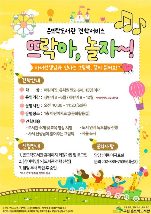 [½Åµ¿¾Æ¹æ¼Û ÀºÆò±¸=À̽ŵ¿±âÀÚ] ÀºÆò±¸´Â ±¸¸³ Àº¶ß¶ôµµ¼­°üÀÌ µµ¼­°ü °ßÇÐ ¼­ºñ½º ¡®¶ß¶ô¾Æ, ³îÀÚ~!¡¯¸¦ 3¿ùºÎÅÍ ¿î¿µÇÑ´Ù°í ¹àÇû´Ù. 2023³âºÎÅÍ ÁøÇàÇØ ¿Â ¡®¶ß¶ô¾Æ, ³îÀÚ~!¡¯´Â °ü³» ¾î¸°ÀÌÁý ¶Ç´Â À¯Ä¡¿ø ¸¸ 2¼¼ºÎÅÍ 6¼¼ ¿ø¾Æ¸¦ ´ë»óÀ¸·Î ¿î¿µµÈ´Ù. À̹ø °ßÇÐ ¼­¡¦