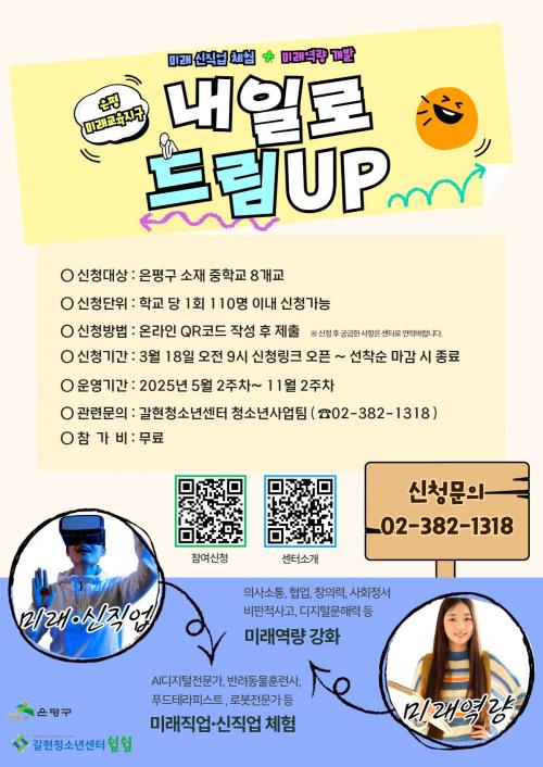 [½Åµ¿¾Æ¹æ¼Û ÀºÆò±¸=À̽ŵ¿±âÀÚ] ÀºÆò±¸´Â ÀºÆò¹Ì·¡±³À°Áö±¸ ¡®³»ÀÏ·Î µå¸²UP¡¯ »ç¾÷À» °¥Çöû¼Ò³â¼¾ÅÍ¿¡¼­ ¿î¿µÇÑ´Ù°í ¹àÇû´Ù. ¡®³»ÀÏ·Î µå¸²UP¡¯Àº û¼Ò³âµéÀÌ Çб³ ¼ö¾÷ ´ë½Å °¥Çöû¼Ò³â¼¾Å͸¦ ¹æ¹®ÇØ ´Ù¾çÇÑ Ã¼ÇèÀ» ÇÒ ¼ö ÀÖ´Â »ç¾÷ÀÌ´Ù. ÇÁ·Î±×·¥Àº ¡®¹Ì·¡¿ª·® ¡¦