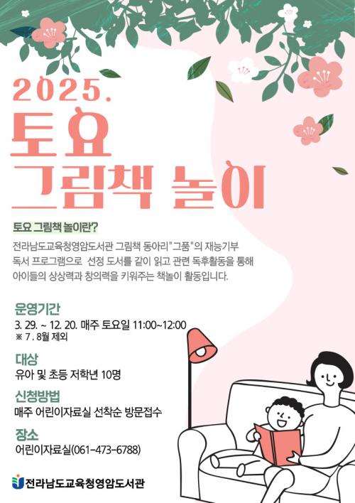 [½Åµ¿¾Æ¹æ¼Û Àü³²¿µ¾Ï=À̽ŵ¿±âÀÚ] Àü¶ó³²µµ±³À°Ã»¿µ¾Ïµµ¼­°üÀº 3¿ù 29ÀϺÎÅÍ 12¿ù 20ÀϱîÁö ¸ÅÁÖ Åä¿äÀÏ 11:00~12:00 À¯¾Æ ¹× Ãʵî ÀúÇгâÀ» À§ÇÑ ¡¸Åä¿ä ±×¸²Ã¥ ³îÀÌ¡¹À» ¿î¿µÇÑ´Ù. ¡¸Åä¿ä ±×¸²Ã¥ ³îÀÌ¡¹´Â ±×¸²Ã¥ µ¿¾Æ¸® ¡®±×ǰ(±×¸²Ã¥À» ǰ´Ù)¡¯ ȸ¿øµéÀÇ Àç´É¡¦