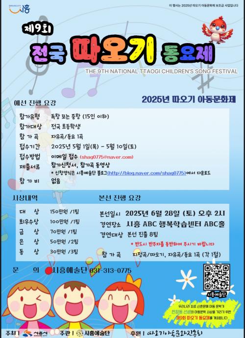 [½Åµ¿¾Æ¹æ¼Û ½ÃÈï½Ã=À̽ŵ¿±âÀÚ] ½ÃÈï½Ã´Â Àü±¹ ÃʵîÇлýÀ» ´ë»óÀ¸·Î ¾Æµ¿ÀÇ Ã¢ÀǼº°ú Àç´ÉÀ» ¹ßÈÖÇÒ ±âȸ¸¦ Á¦°øÇϰíÀÚ 5¿ù 1ÀϺÎÅÍ 10ÀϱîÁö ¡®2025³â Á¦9ȸ Àü±¹ µû¿À±â¾Æµ¿µ¿¿äÁ¦¡¯¿¡ Âü¿©ÇÒ µ¶Ã¢ÀÚ¿Í ÁßâÆÀÀ» ¸ðÁýÇÑ´Ù. ¿ÃÇØ 9ȸ°¸¦ ¸ÂÀÌÇÑ µû¿À±â¾Æµ¿µ¿¿äÁ¦´Â¡¦