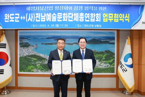 [½Åµ¿¾Æ¹æ¼Û ¿Ïµµ=À̼±Á¾ ±âÀÚ] ¿Ïµµ±º°ú (»ç)Àü³²¿¹¼ú¹®È­´ÜüÃÑ¿¬ÇÕȸ°¡ ÇØ¾çÄ¡À¯»ê¾÷ Ȱ¼ºÈ­¿Í Çùȸ ȸ¿øµéÀÇ °Ç°­ ÁõÁøÀ» À§ÇØ ¼ÕÀ» ¸ÂÀâ¾Ò´Ù. Çù¾à½ÄÀº 4¿ù 28ÀÏ ¿Ïµµ±ºÃ» »óȲ½Ç¿¡¼­ ÁøÇàµÆÀ¸¸ç, ½Å¿ìö ¿Ïµµ±º¼ö¿Í ÀÓÁ¡È£ Àü³²¿¹ÃÑ È¸ÀåÀ» ºñ·ÔÇÑ °ü°è¡¦
