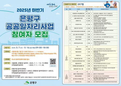 [½Åµ¿¾Æ¹æ¼Û ÀºÆò±¸=À̽ŵ¿±âÀÚ] ¼­¿ï ÀºÆò±¸´Â °æÁ¦Àû ¾î·Á¿òÀ» °Þ´Â Àú¼Òµæ Ãë¾÷ Ãë¾à°èÃþ°ú ½ÇÁ÷ÀÚ µîÀÇ ÀÚ¸³À» Áö¿øÇϱâ À§ÇØ ¡®2025³â ÇϹݱ⠰ø°øÀÏÀÚ¸®»ç¾÷¡¯ Âü¿©ÀÚ¸¦ ¸ðÁýÇÑ´Ù°í ¹àÇû´Ù. ¡®ÇϹݱ⠰ø°øÀÏÀÚ¸®»ç¾÷¡¯Àº °ñ¸ñȯ°æ Á¤ºñ, »ç¹«½Ç ȯ°æÁ¤ºñ, ½ºÄð¡¦