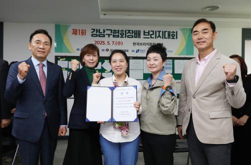 [½Åµ¿¾Æ¹æ¼Û °­³²±¸=À̽ŵ¿±âÀÚ] ²ÞÀÌ ¸ðÀÌ´Â µµ½Ã, ¹Ì·¡¸¦ ±×¸®´Â °­³²±¸°¡ 7ÀÏ Çѱ¹ºê¸®ÁöÇùȸ¿¡¼­ Á¦1ȸ °­³²±¸ÇùȸÀå¹è ºê¸®Áö´ëȸ¸¦ °³ÃÖÇß´Ù. ºê¸®Áö´Â Àü·«°ú ÆÀ¿öÅ©¸¦ ¹ÙÅÁÀ¸·Î 4¸íÀÌ Â¦À» ÀÌ·ï Á¡¼ö¸¦ °Ü·ç´Â Ä«µå °ÔÀÓÀ¸·Î, ¼¼°èÀûÀÎ ±â¾÷ÀÎ ºô °ÔÀÌÃ÷¿Í ¡¦