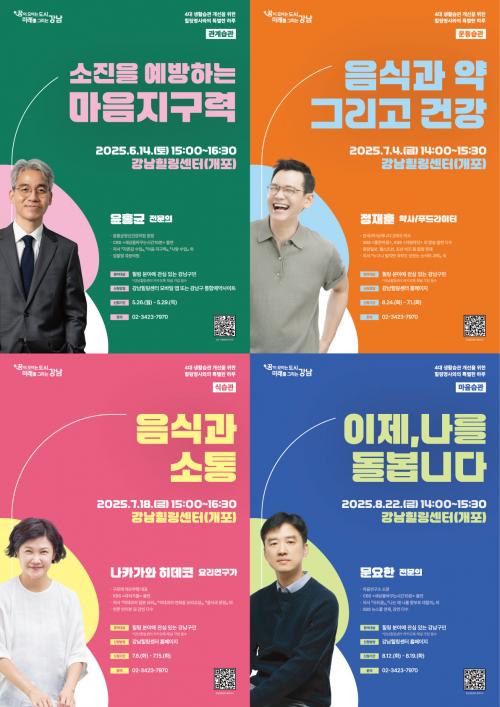[½Åµ¿¾Æ¹æ¼Û °­³²±¸=À̽ŵ¿±âÀÚ] ²ÞÀÌ ¸ðÀÌ´Â µµ½Ã, ¹Ì·¡¸¦ ±×¸®´Â °­³²±¸°¡ ¿À´Â 6¿ùºÎÅÍ 8¿ù±îÁö ÃÑ 4ȸ¿¡ °ÉÃÄ °­³²Èú¸µ¼¾ÅÍ¿¡¼­ ºÐ¾ßº° ¸í»ç¸¦ ÃÊûÇÑ Èú¸µ Ư°­À» °³ÃÖÇÑ´Ù. ¿îµ¿, ¸¶À½, °ü°è, À½½Ä µî 4°³ ºÐ¾ßÀÇ ½À°ü °³¼±À» ¸ñÇ¥·Î Â÷º°È­µÈ Èú¸µ Àü¹® °­Á¡¦