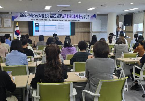 [½Åµ¿¾Æ¹æ¼Û Àü³²=À̽ŵ¿±âÀÚ] Àü¶ó³²µµ±³À°Ã»ÀÌ ¼Ò¼Ó °ø°øµµ¼­°üµéÀÇ ¡®¼­Á¡ ¹Ù·Î´ëÃâ ¼­ºñ½º¡¯¸¦ È®´ëÇÑ´Ù. Àü¶ó³²µµ±³À°Ã»Àº 5¿ù 28ÀÏ ³ªÁÖµµ¼­°ü¿¡¼­ 22°³ °ø°øµµ¼­°ü °ü°èÀÚµéÀ» ´ë»óÀ¸·Î ¼³¸íȸ¸¦ °®°í ¡®¼­Á¡ ¹Ù·Î´ëÃâ¼­ºñ½º¡¯ ½Ã½ºÅÛ ¹× ¼­ºñ½º È®´ë ¹æ¾ÈÀ»¡¦