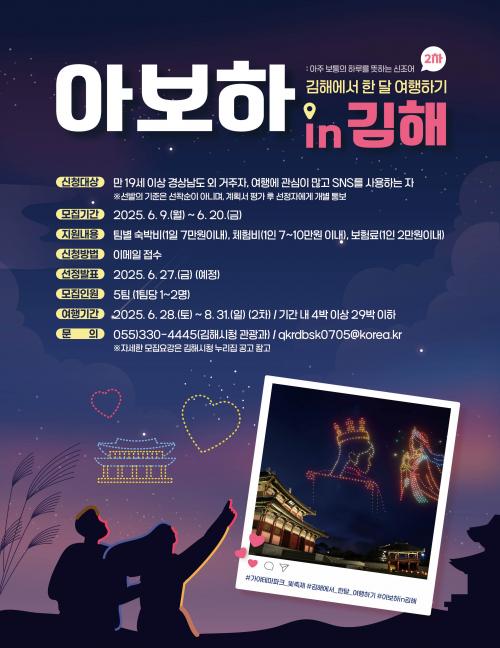2025 °æ³²¿¡¼­ ÇÑ ´Þ ¿©ÇàÇϱ⠡®¾Æº¸ÇÏ in ±èÇØ¡¯ Âü°¡ÀÚ ¸ðÁý (2Â÷)