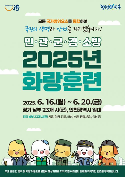 [½Åµ¿¾Æ¹æ¼Û ½ÃÈï½Ã=À̽ŵ¿±âÀÚ] ½ÃÈï½Ã´Â ¿À´Â 6¿ù 16ÀϺÎÅÍ 20ÀϱîÁö ½ÃÈï½Ã Àü¿ª¿¡¼­ ¡®2025³â È­¶ûÈÆ·Ã¡¯À» ½Ç½ÃÇÑ´Ù. È­¶ûÈÆ·ÃÀº ¹Î¤ý°ü¤ý±º¤ý°æ¤ý¼Ò¹æÀÇ ÅëÇÕ¹æÀ§ ´É·ÂÀ» °­È­ÇÏ°í ±º ÀÛÀü ¼öÇà ´É·ÂÀ» ¹è¾çÇϰíÀÚ °Ý³âÁ¦·Î ÁøÇàÇÏ´Â ÈĹæÁö¿ª Á¾ÇÕ ÈÆ·ÃÀÌ´Ù.¡¦