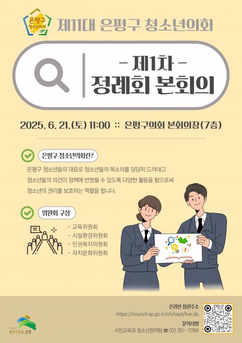 Á¦11´ë ÀºÆò±¸ û¼Ò³âÀÇȸ Á¦1Â÷ Á¤·Êȸ º»È¸ÀÇ °³ÃÖ