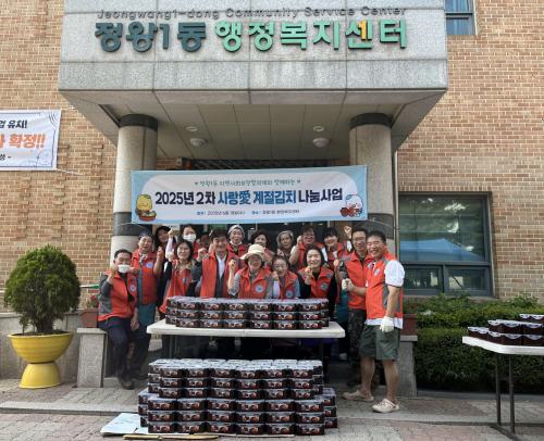[½Åµ¿¾Æ¹æ¼Û ½ÃÈï½Ã=À̽ŵ¿±âÀÚ] ½ÃÈï½Ã Á¤¿Õ1µ¿ Áö¿ª»çȸº¸ÀåÇùÀÇü´Â Áö³­ 6¿ù 18ÀÏ Á¦Ã¶ ³ó»ê¹°·Î ´ã±Ù ±èÄ¡¸¦ ³ª´©´Â ¡®»ç¶û¾Ö(äñ) °èÀý±èÄ¡¡¯ Çà»ç¸¦ ÁøÇàÇß´Ù. À̹ø Çà»ç´Â Á¤¿Õ1µ¿ Áö¿ª»çȸº¸ÀåÇùÀÇü À§¿øµéÀÌ ÇÔ²² Á¦Ã¶À» ¸ÂÀº ³ó»ê¹°·Î ´ã±Ù ¿­¹«¾ó°¥ÀÌ ±è¡¦