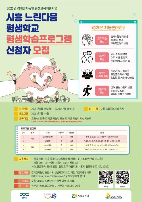 [½Åµ¿¾Æ¹æ¼Û ½ÃÈï½Ã=À̽ŵ¿±âÀÚ] ½ÃÈï½Ã´Â 2025³â °æ°è¼± Áö´ÉÀÎ Æò»ý±³À° Áö¿ø»ç¾÷ÀÎ ¡®½ÃÈï ´À¸°´Ù¿ò Æò»ýÇб³¡¯ÀÇ ¼±º°°Ë»ç¿¡ À̾î, 6¿ù 23ÀϺÎÅÍ 7¿ù 16ÀϱîÁö Æò»ýÇнÀ ÇÁ·Î±×·¥ Âü¿©ÀÚ¸¦ ¸ðÁýÇÑ´Ù. À̹ø ÇÁ·Î±×·¥Àº °æ°è¼± Áö´ÉÀ» °¡Áø ½Ã¹Î ¶Ç´Â ±× ÀǽÉÀÌ ÀÖ¡¦