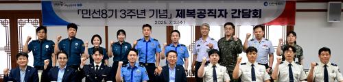 [½Åµ¿¾Æ¹æ¼Û ÀÎõ=À±¹Î½Ä±âÀÚ]ÀÎõ±¤¿ª½Ã(½ÃÀå À¯Á¤º¹)´Â 7¿ù 2ÀÏ ½Ãû ±¸³»½Ä´ç¿¡¼­ ±º, °æÂû, ÇØ¾ç°æÂû, ¼Ò¹æ°ø¹«¿ø µî ÃÑ 16¸íÀÇ Á¦º¹°ø¹«¿ø°ú ÇÔ²² Á¡½É ½Ä»ç¸¦ ÇÏ¸ç ¼ÒÅë°ú °Ý·ÁÀÇ ½Ã°£À» °¡Á³´Ù°í ¹àÇû´Ù. À̹ø °£´ãȸ´Â Áö¿ªÀÇ ¾ÈÀü°ú Ä¡¾ÈÀ» Ã¥ÀÓÁö°í ½Ã¹ÎÀÇ¡¦