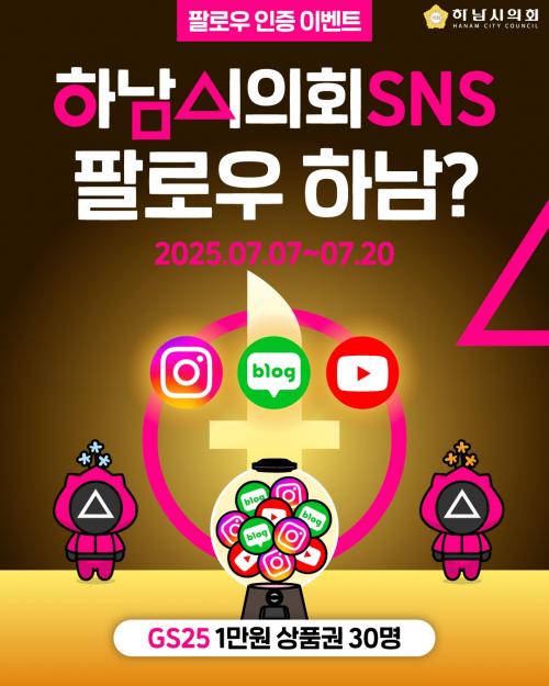 [½Åµ¿¾Æ¹æ¼Û Çϳ²½Ã=À̽ŵ¿±âÀÚ] Çϳ²½ÃÀÇȸ°¡ ¼Ò¼È¹Ìµð¾î¸¦ Ȱ¿ëÇØ ½Ã¹Îµé°úÀÇ ¼ÒÅëÀ» °­È­Çϱâ À§ÇØ SNS ÆÈ·Î¿ì&±¸µ¶ ÀÎÁõ À̺¥Æ®¸¦ ÁøÇàÇÑ´Ù°í 8ÀÏ ¹àÇû´Ù. ¿À´Â 20ÀϱîÁö 14ÀÏ µ¿¾È ÁøÇàµÇ´Â SNS ÆÈ·Î¿ì&±¸µ¶ ÀÎÁõ À̺¥Æ® Âü¿© ¹æ¹ýÀº Çϳ²½ÃÀÇȸ °ø½Ä SNS ä³Î¡¦