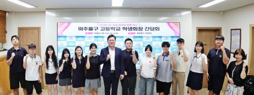 [½Åµ¿¾Æ¹æ¼Û ÀÎõ= À±¹Î½Ä ±âÀÚ]ÀÎõ ¹ÌÃßȦ±¸(±¸Ã»Àå ÀÌ¿µÈÆ)´Â 25ÀÏ °ü³» °íµîÇб³ ÇлýȸÀåÀ» ´ë»óÀ¸·Î ¡®¹Ì·¡¼¼´ë¿Í ÇÔ²²ÇÏ´Â °íµîÇб³ ÇлýȸÀå °£´ãȸ¡¯¸¦ °³ÃÖÇß´Ù. À̹ø °£´ãȸ¿¡´Â °ü³» °íµîÇб³ ÇлýȸÀå µî 16¸íÀÌ Âü¼®ÇßÀ¸¸ç, ¡ã¹ÌÃßȦ±¸ ±³À° ¹× û¼Ò³â¡¦