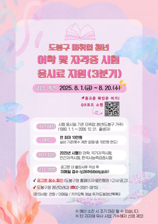 [½Åµ¿¾Æ¹æ¼Û µµºÀ±¸=À̽ŵ¿±âÀÚ] ¼­¿ï µµºÀ±¸°¡ ¿ÃÇØ 3ºÐ±â ¡®¹ÌÃë¾÷ û³â ¾îÇÐ ¹× ÀÚ°ÝÁõ ½ÃÇè ÀÀ½Ã·á Áö¿ø»ç¾÷¡¯ ½ÅûÀÚ¸¦ Á¢¼öÇÑ´Ù. º» »ç¾÷Àº û³âµéÀÇ ½ÃÇè ÀÀ½Ã·á¿¡ ´ëÇÑ °æÁ¦Àû ºÎ´ãÀ» ´ú°í, Àû±ØÀûÀÎ Áø·Î Ž»ö°ú µµÀüÀ» µ¶·ÁÇϱâ À§ÇØ ¸¶·ÃµÆ´Ù. Áö¿ø »ç¡¦